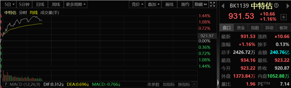 值得注意的是,今天中特估这个板块又飙了,可以说对市场起到了较大的支撑作用。