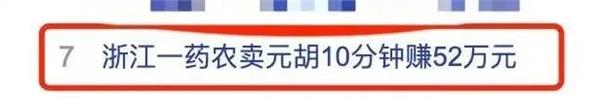 6月24日话题#浙江一药农卖元胡10分钟赚52万元#,登上热搜,引发关注