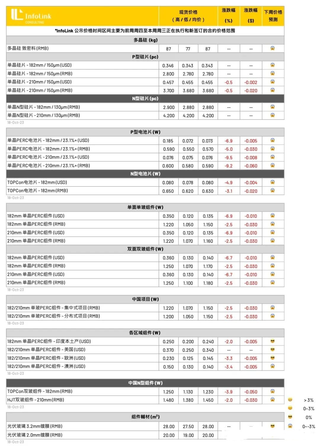 10月中旬,当前电池厂家库存水平维持约4-5天不等,在硅片与组件价格的双重跌势下,电池环节价格难以坚挺,成交价格快速下跌。