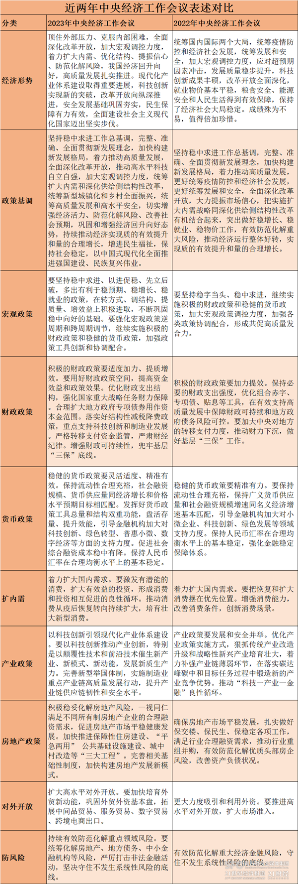 今年两天的会期与去年相同,会议延续了12月8日中央政治局会议对于经济工作的总基调,即“明年要坚持稳中求进,以进促稳,先立后破,强化宏观政策逆周期和跨周期调节”。
