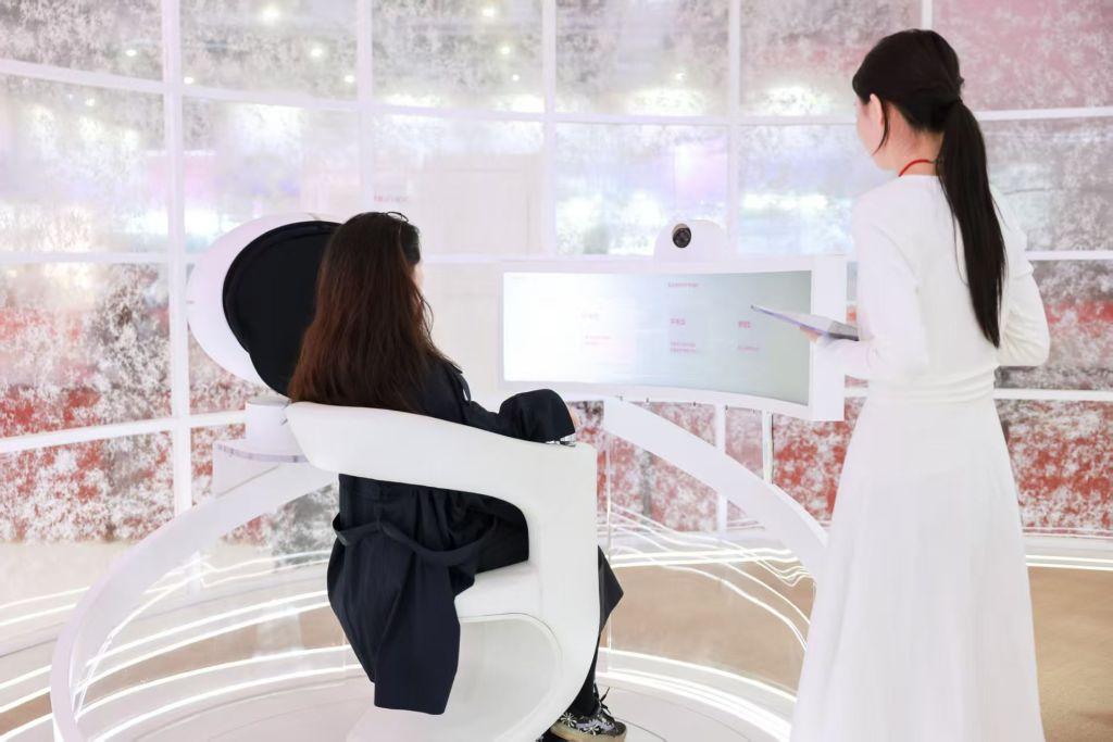 消费者在现场体验资生堂基于AI与中国肌肤大数据的肌肤诊断