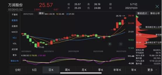 近期万润股份的股价走势十分可喜,自11月以来,万润股份股价已上涨24%。