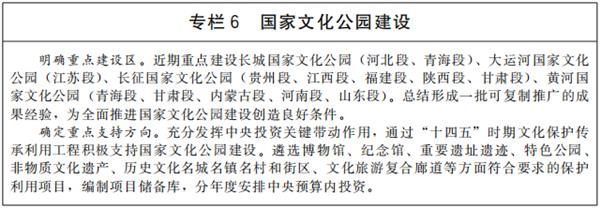推进国家文化公园建设,生动呈现中华文化的独特创造、价值理念和鲜明特色,树立和突出各民族共享的中华文化符号和中华民族形象,探索新时代文物和文化资源保护传承利用新路径,把国家文化公园建设成为传承中华文明的历史文化走廊、中华民族共同精神家园、提升人民生活品质的文化和旅游体验空间。加快建设长城、大运河、长征、黄河等国家文化公园,整合具有突出意义、重要影响、重大主题的文物和文化资源,重点建设管控保护、主题展示、文旅融合、传统利用四类主体功能区,实施保护传承、研究发掘、环境配套、文旅融合、数字再现五大工程,突出“万里长城”、“千年运河”、“两万五千里长征”、“九曲黄河”整体辨识度。推进优质文化旅游资源一体化开发,科学规划、开发文化旅游产品和商品。推出参观游览联程联运经典线路,开展整体品牌塑造和营销推介。