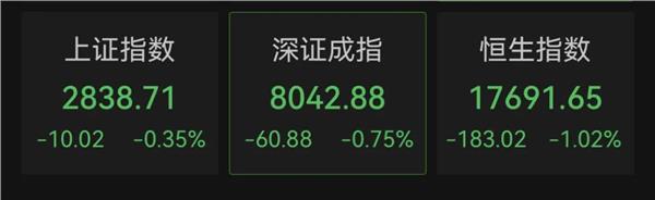 港股方面,恒生指数跳水下跌,恒生科技指数更是跌近2%。