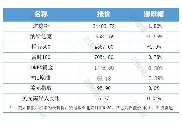 美股全线下跌,道指跌1.86%报34483.72点,标普500指数跌1.9%报4567点,纳指跌1.55%报15537.69点。11月,美股涨跌不一,道指跌3.73%,标普500指数跌0.83%,纳指涨0.25%。